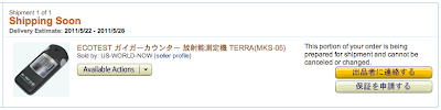 Then, I ordered one from a dealer in Japan using Amazon.co.jp Marketplace…. Hmmm? Same sorts of problems, it seems. It’s been weeks now since I ordered and still no geiger counter. This has happened even though when I ordered the dealer claimed to have it in stock and that shipping would be within three days….